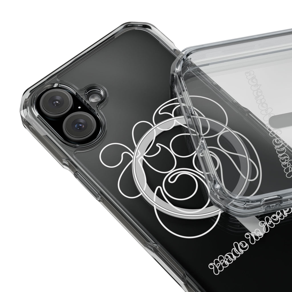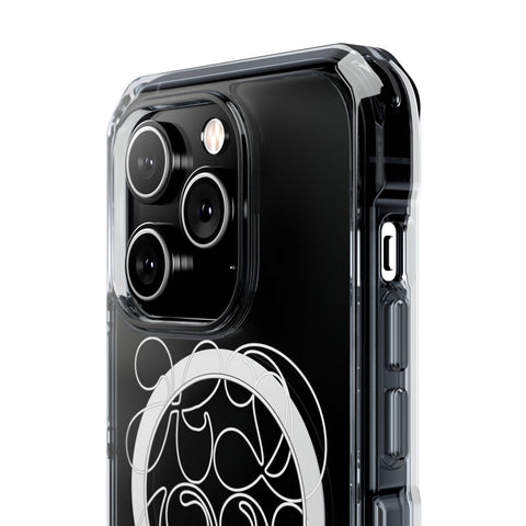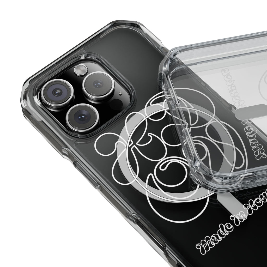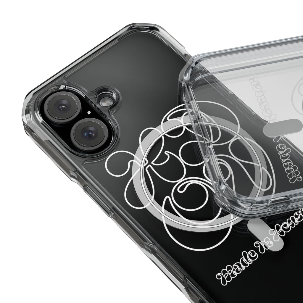 Protect your iPhone 14, iPhone 15, or iPhone 16 with this MagSafe®-compatible impact case, crafted from durable polycarbonate and flexible TPU. This elegant and subtle case features an embedded MagSafe®-compatible module for seamless accessory compatibility, air-cushioned bumper corners for superior drop protection, and holes for straps or charms, ensuring both style and functionality.